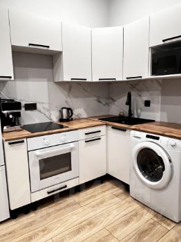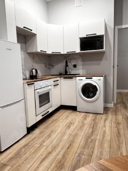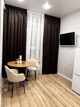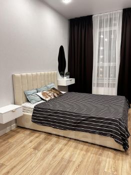 Квартира с дизайнерским ремонтом, полностью готова к комфортному проживанию. В квартире вся необходимая мебель и техника: холодильник, телевизор, стиральная машина с сушкой, микроволновка и т.д. Кухня оборудована современной мебелью, а в комнате — всё для отдыха и работы. В ванной комнате установлена душевая кабина.