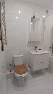 Квартира с косметическим ремонтом: аккуратные отделочные работы и современный дизайн. В комнатах и на кухне есть необходимая мебель. Для вашего удобства в квартире установлены кондиционер, холодильник, телевизор и стиральная машина. Ванная комната оборудована ванной. Две лоджии добавляют дополнительное пространство для отдыха или хранения вещей.