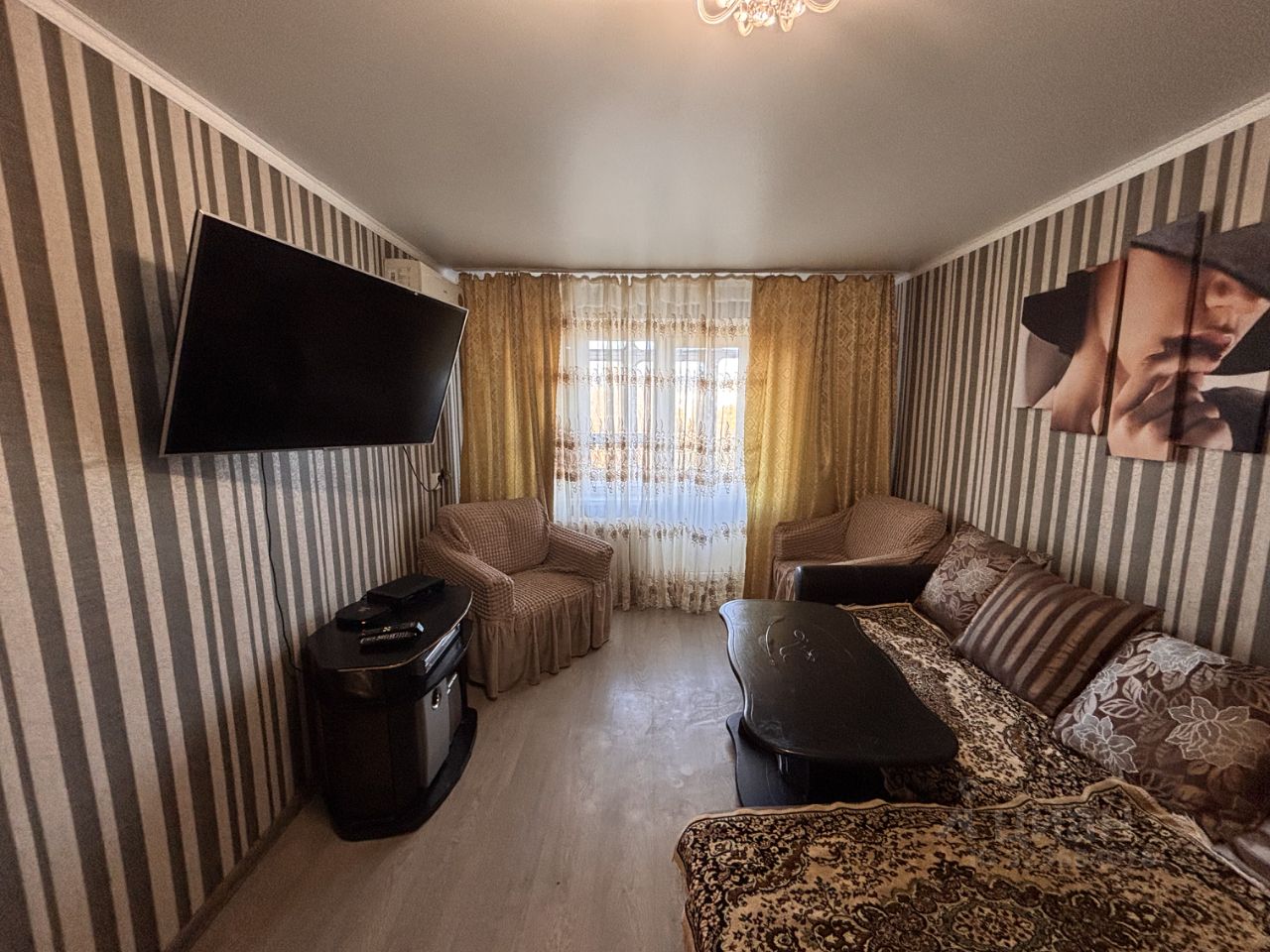 В квартире есть вся необходимая для жизни мебель: раскладной диван, двуспальная кровать, место для хранения вещей. Из бытовой техники: сплит- система, стиральная машина, электрический чайник, вытяжка, холодильник, микроволновая печь, ЖК-телевизор.