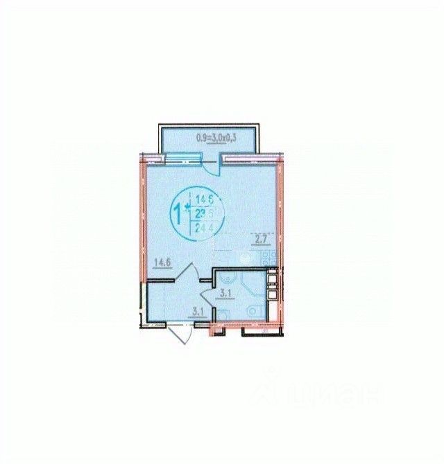 Общая площадь 24,4 м2