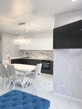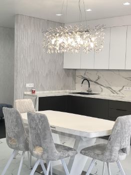 Встроенная кухня с встроенный быт.техникой, духовой шкаф, столовая группа.