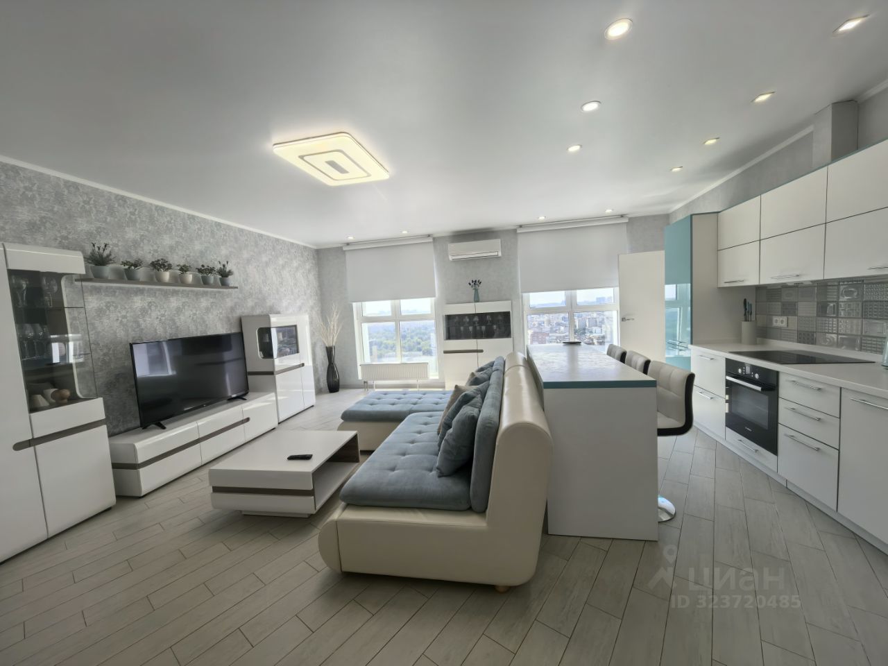 В гостиной диван раскладной, тв группа.