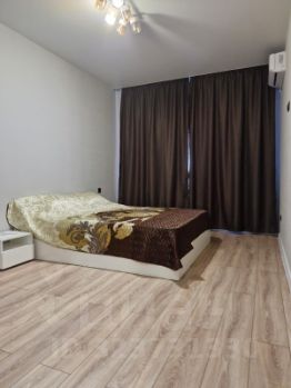В квартире сделан косметический ремонт, она полностью готова для комфортного проживания. Просторная кухня площадью 13.8 кв. м оборудована необходимой мебелью и техникой: здесь есть холодильник и кондиционер. В комнате также есть мебель, телевизор, а в ванной комнате установлена стиральная машина и ванна.