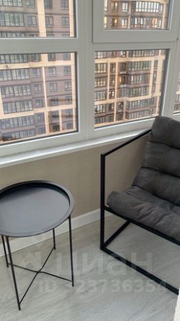 На балконе обустроена уютная зона отдыха с панорамным видом на город.