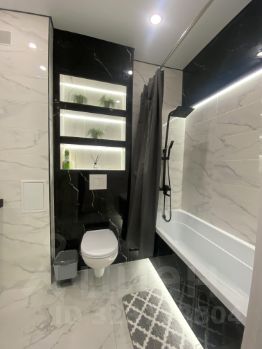 Облицована современным керамогранитом с установкой европейской сантехники .