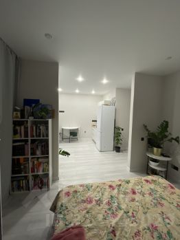 В квартире выполнен отличный ремонт, который создаёт атмосферу уюта и современности. Просторная студия оборудована всей необходимой мебелью и техникой: кондиционер, холодильник и стиральная машина. Ванная комната оснащена душевой кабиной. Окна выходят как на улицу, так и во двор, поэтому в квартире всегда светло и тихо. Есть балкон, где можно наслаждаться утренним кофе или вечерними закатами.