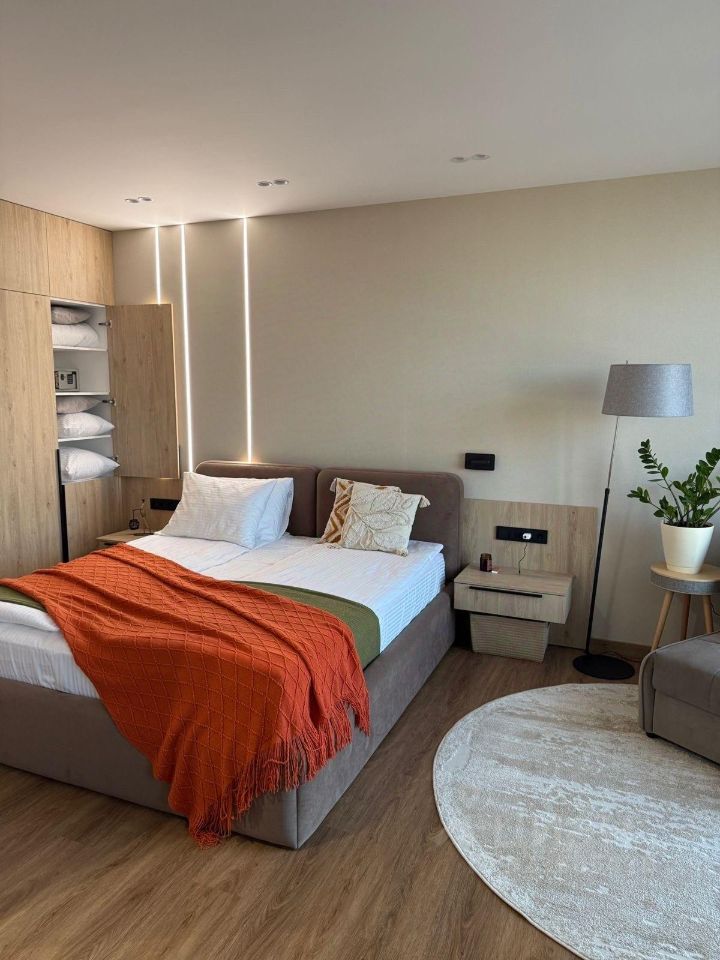 Апартаменты укомплектованы всем необходимым для комфортной жизни, включая парковочное место на многоуровневой парковке с видео наблюдением. Возможно дистанционное заселение.