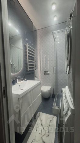 с/у компактный, но оснащен всем необходимым для пребывания: инсталляция, водонагреватель, тропический душ, стиральная и сушильная машины, зеркало с подсветкой, теплый пол, принудительная вентиляция, электрический полотенцесушитель, напольные весы
