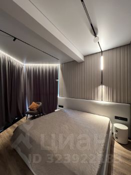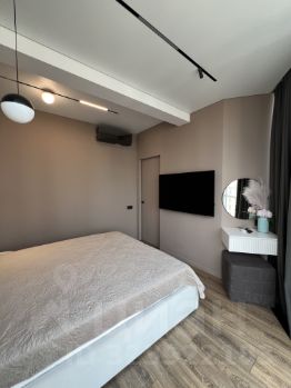 В спальне большая кровать с ортопедическим матрасом, туалетный столик, комфортные и разные зоны освещения для любой обстановки.