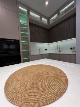 Кухня оборудована: посудомоечной машиной, трехступенчатым фильтром для очистки воды, духовой шкаф, микроволновка, встроенный холодильник, обеденный остров.