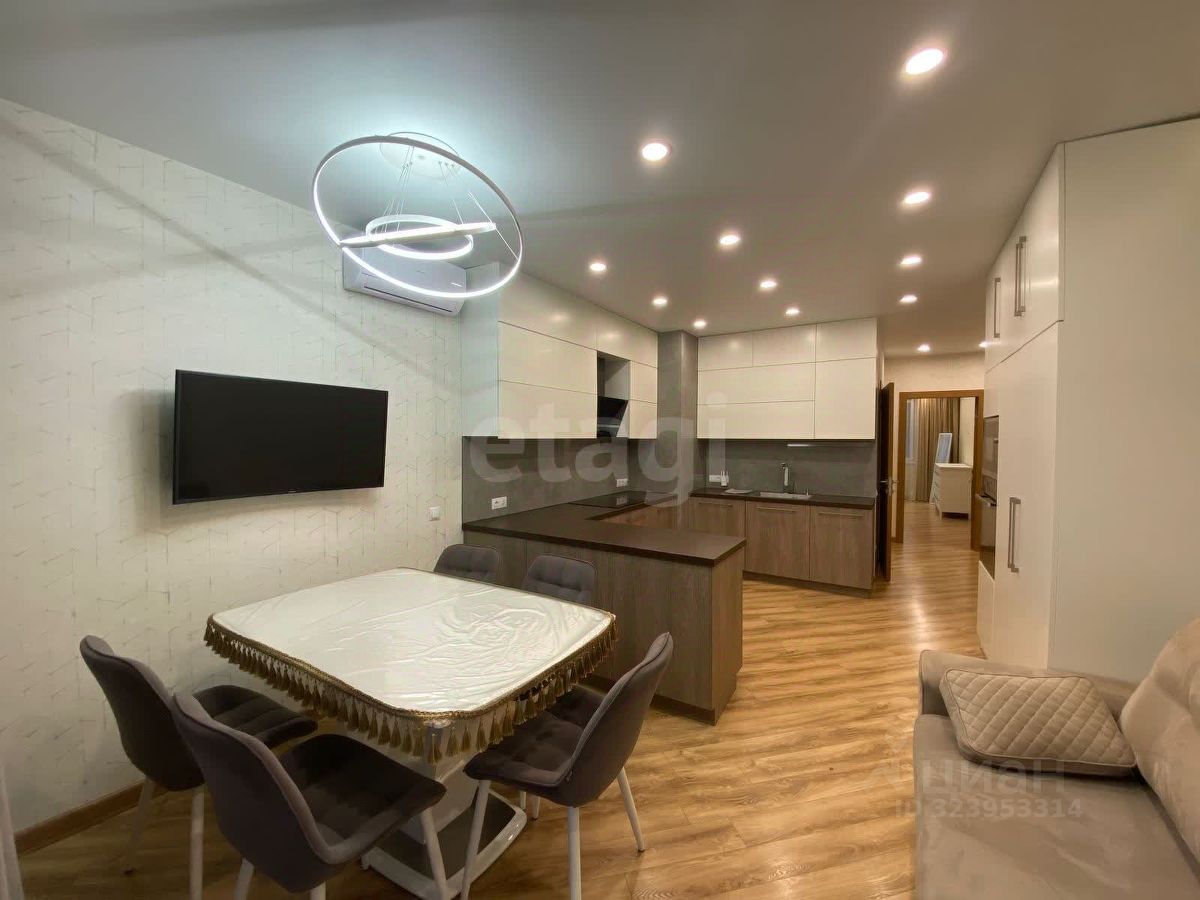 Современная трехкомнатная квартира в жилом комплексе "Каскад" сдается на длительный срок. Объект расположен в развитом районе с закрытой охраняемой территорией, детскими площадками, школами и садами в шаговой доступности. Рядом находятся прогулочные зоны, включая парки, скверы и "Солнечный остров". Окна выходят во двор, что обеспечивает тишину и спокойствие.