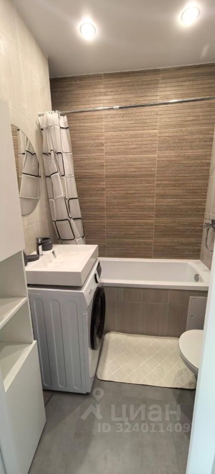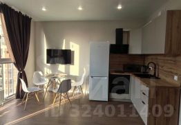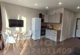 Студия с новым ремонтом и мебелью (диван , шкаф, кухонный гарнитур , обеденная зона (стол , 4 стула ) , стеллаж в ванной комнате , так же есть вся необходимая техника стиральная машина, микроволновая печь , духовка , варочная панель, вытяжка , холодильник, телевизор.Площадь студии 28 м2.