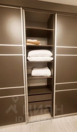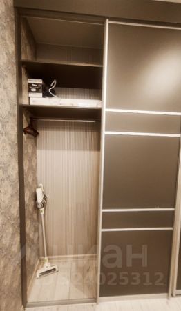 В комнате большой встроенный шкаф-купе, ТВ, двуспальная кровать, раскладной диван, прикроватная тумба, столик, пылесос, утюг, сушилка.