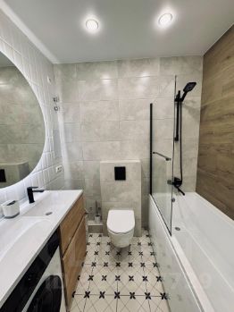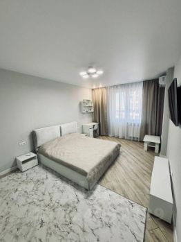 В квартире сделан евроремонт, что создаёт современную и стильную атмосферу. На кухне и в комнате есть вся необходимая мебель, а также техника: кондиционер, холодильник, телевизор и стиральная машина. Ванная комната оборудована как ванной, так и душевой кабиной, что делает её функциональной и удобной.