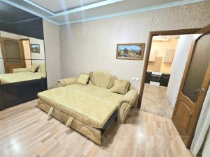 В квартире большой и вместительный шкаф-купе, диван двухместный, большой телевизор. Квартира не угловая, отопление хорошее, для летнего периода предусмотрена сплит-система.