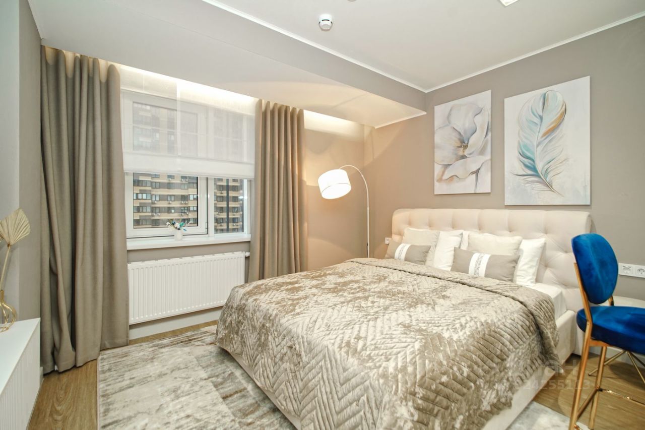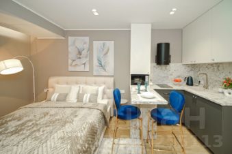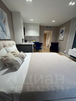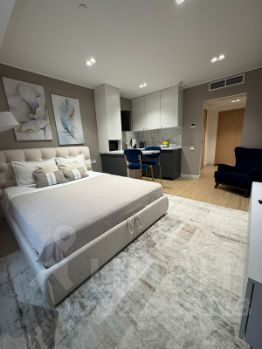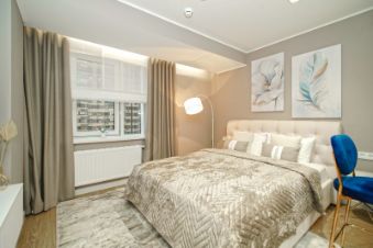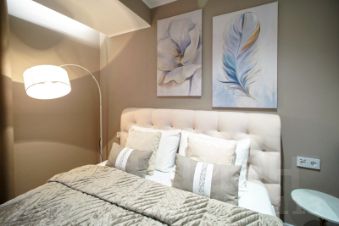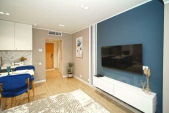 В апартаментах новый ремонт, использованы самые дорогие и высококачественные материалы. Номер оборудован двуспальной кроватью с ортопедическим матрасом Аскона. Также в апартаментах есть Wi-Fi, со скоростью доступа в интернет 100 Мб/сек.