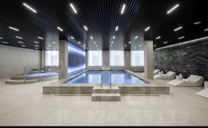 В Гранд Отеле, где находятся апартаменты, есть собственный бассейн и комплекс саун, тренажерный зал (надо только спуститься на несколько этажей), коворкинг-зона с Wi-Fi, большая терраса с ландшафтным дизайном, беседками и качелями, платная автомобильная парковка (также рядом в шаговой доступности большая бесплатная парковка развлекательного центра). В здании апарт-отеля находятся кафе и пекарня Близкие души и магазин Пятерочка.