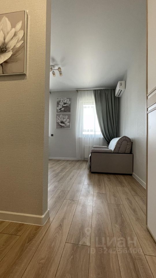 Все выполнено гармонично ,из качественных материалов. Организовано пространство гостиной, кухни, вместительная гардеробная, на лоджии создана великолепная зона отдыха с панорамным обзорным видом, видны горы на горизонте. Диван супер-комфорт для качественного отдыха и глубокого погружения в сон. Телевизор при необходимости установим, есть кондиционер, микроволновая печь, индукционная плита, два гардеробных шкафа, гладильная доска, утюг, посуда !