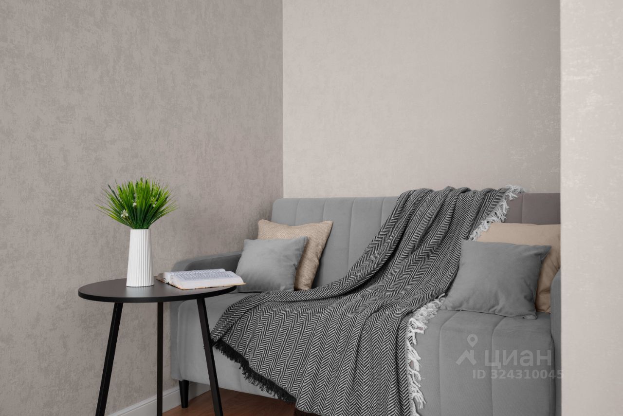 В комнате двуспальная кровать с ортопедическим матрасом Аскона, удобный раскладной диван, телевизор с доступом к смарт ТВ и цифровому контенту, стильный столик.