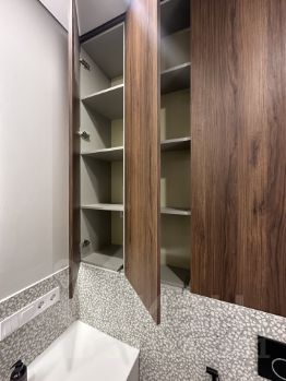 • санузел с большой душевой: Испанским керамогранитом и сантехникой , проточный водонагреватель на случаи отключения воды, большая столешница с раковиной , очень много мест для хранения , гигиенический душ, электрический полотенцесушитель , тёплый пол.
