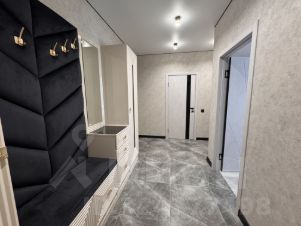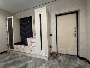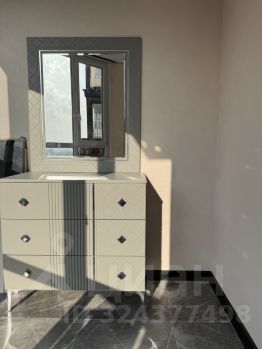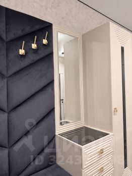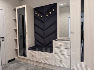 1. Большая удобная прихожая с большим зеркалом, мягкой обувницей и вешалкой из мягкой панели, подвесная консоль для мелочей и косметики.