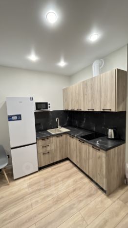 - оборудованная кухня (холодильник, микроволновая печь, индукционная варочная поверхность, вытяжка, электрический чайник, с также раскладывающийся диван, обеденный стол и стулья для ваших завтраков, обедов и ужинов)