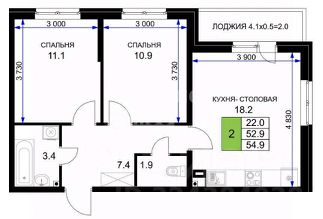 Арт. 125550955 Сдается Евро 2-х квартиру 55 кв. м. в монолитно-кирпичном доме на 2-м этаже ЖК "РАКУРС". Комнаты изолированные, кухня-гостиная 18,2 кв. м., лоджия.