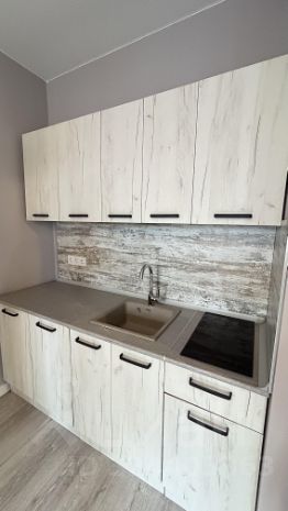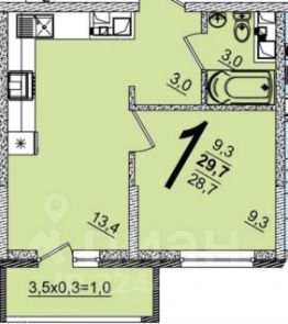 Квартира полностью готова для комфортного проживания. В комнате и кухне выполнен современный евроремонт. На кухне есть вся необходимая мебель, в том числе холодильник и стиральная машина. В совмещенном санузле установлена душевая кабина, что добавляет удобства в быту. В квартире также есть лоджия, где можно организовать зону отдыха.