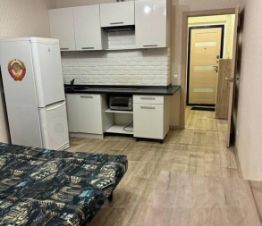 В квартире сделан косметический ремонт. Пространство студии грамотно организовано: есть удобная мебель как в комнате, так и на кухне. Квартира оснащена необходимой техникой: кондиционером, холодильником и стиральной машиной. В ванной комнате установлена душевая кабина. Небольшой балкон позволит вам наслаждаться свежим воздухом и видом на двор.