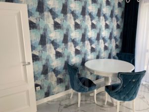 Площадь: 50кв.м, лоджия. Спальня + кухня-столовая. Интерьер квартиры в современной стиле.