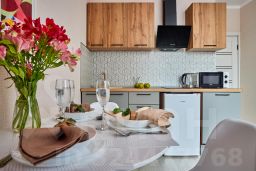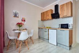 В квартире есть все, что нужно для комфортного проживания: двуспальная кровать, раскладной диван, постельное белье и полотенца, посуда, микроволновка, телевизор, Wi-Fi, гигиенические и гладильные принадлежности, стиральная машина, холодильник, фен,