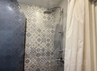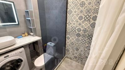 В ванной комнате потолочные точки освещения плюс зеркало с подсветкой, душевая, стиральная машинка CANDY.