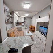 Квартира полностью обставлена мебелью, поэтому можно сразу заезжать и наслаждаться уютом. В наличии вся необходимая техника: кондиционер, холодильник, посудомоечная и стиральная машины, телевизор. Совмещенный санузел оборудован ванной. Окна выходят во двор, что обеспечивает тишину и спокойствие. Есть два балкона, где можно устроить зону для отдыха