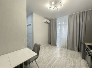 Квартира полностью готова к проживанию: в комнате и на кухне есть вся необходимая мебель. Оборудована просторная ванная комната. В квартире установлена современная техника: кондиционер, холодильник, посудомоечная и стиральная машины, а также доступен интернет.