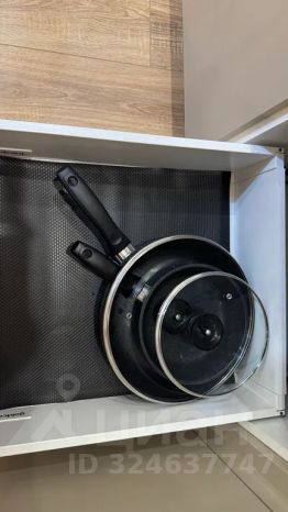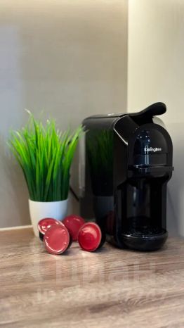 Укомплектованная кухня: холодильник, варочная панель, чайник, кофемашина, новая посуда, микроволновая печь, духовой шкаф, посудомоечная машина и различная кухонная утварь.