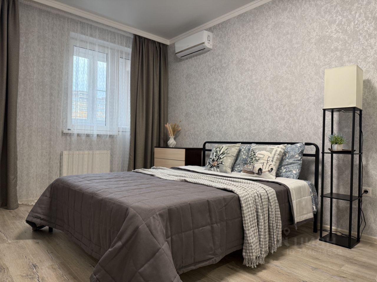 В комнате кровать Quinn size 160 на 200 с ортопедическим матрасом.