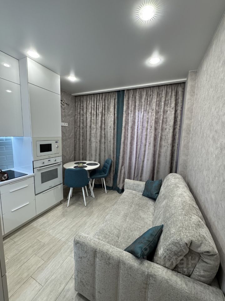 В квартире сделан дизайнерский ремонт, который создает атмосферу уюта и комфорта. Просторная кухня площадью 11 кв. м оснащена всей необходимой мебелью и техникой, включая холодильник и посудомоечную машину. В комнате также есть мебель, а для комфортного проживания установлены кондиционер и стиральная машина. В ванной комнате установлена душевая кабина.