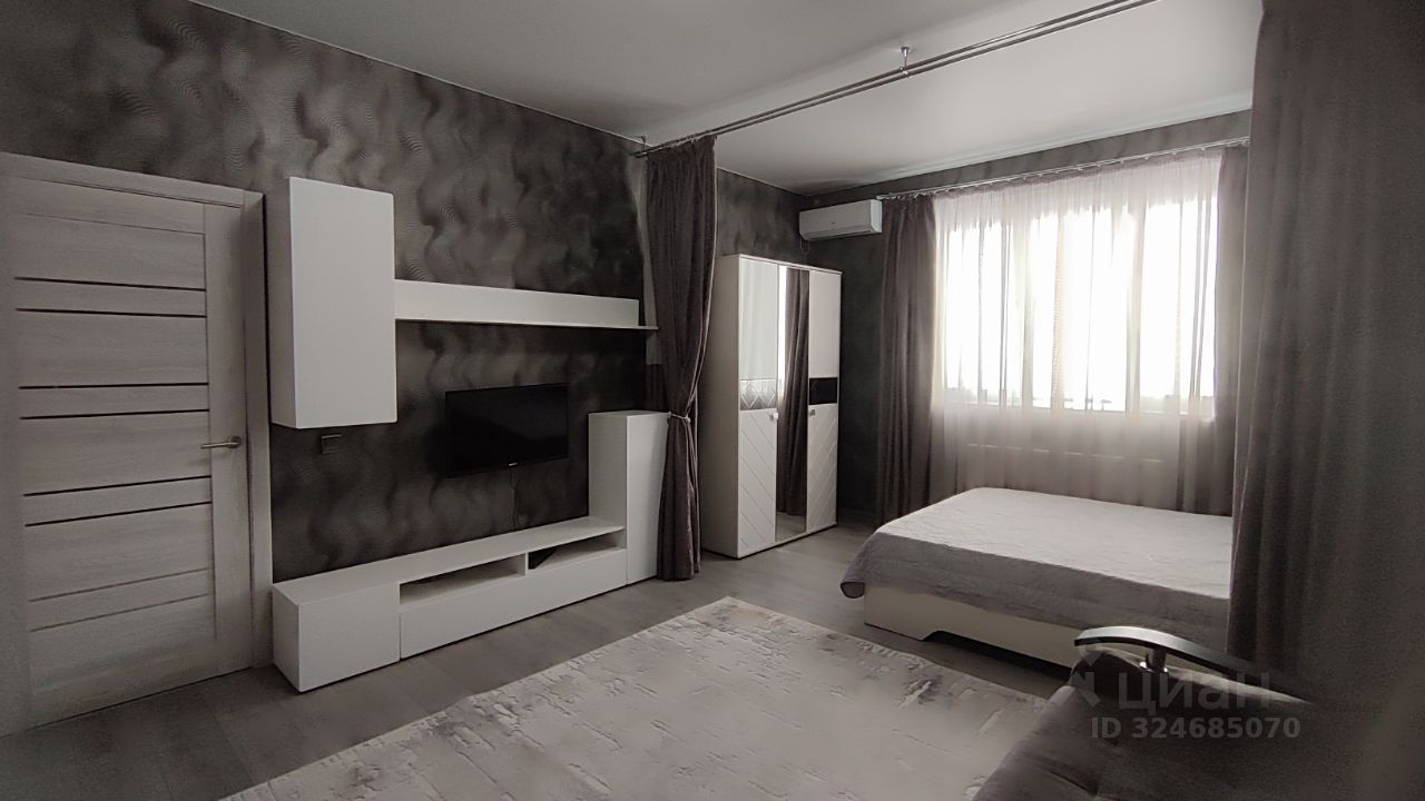 Сдаётся уютная однокомнатная квартира с евроремонтом по адресу Россия, Краснодар, Стахановская улица, 1/5. Общая площадь — 42 кв. м, из которых 20 кв. м занимает жилая зона и 12 кв. м — кухня. Квартира расположена на 4 этаже современного 20-этажного дома, построенного в 2021 году. Высокие потолки 2.9 метра создают ощущение простора и свободы.
