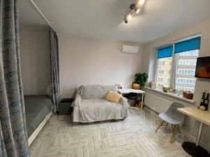 Сдаётся замечательная студия площадью 28 кв. м на 9-м этаже нового 24-этажного дома на срок от трех месяцев.