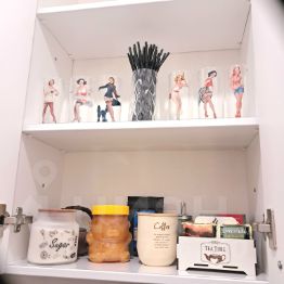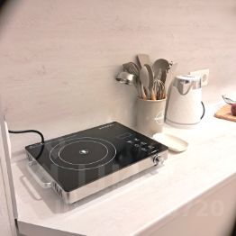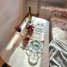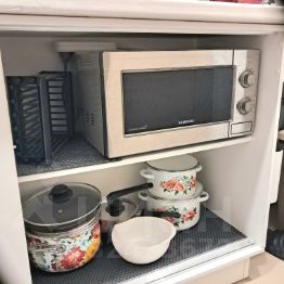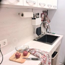 Интерьер продуман до мелочей. Кухня укомплектована всем необходимым: техникой, посудой, минимальным набором продуктов. Большой холодильник с морозильной камерой позволит Вам приготовить и сохранить необходимое количество пищи. Имеется плита и микроволновка для приготовления и разогрева еды.