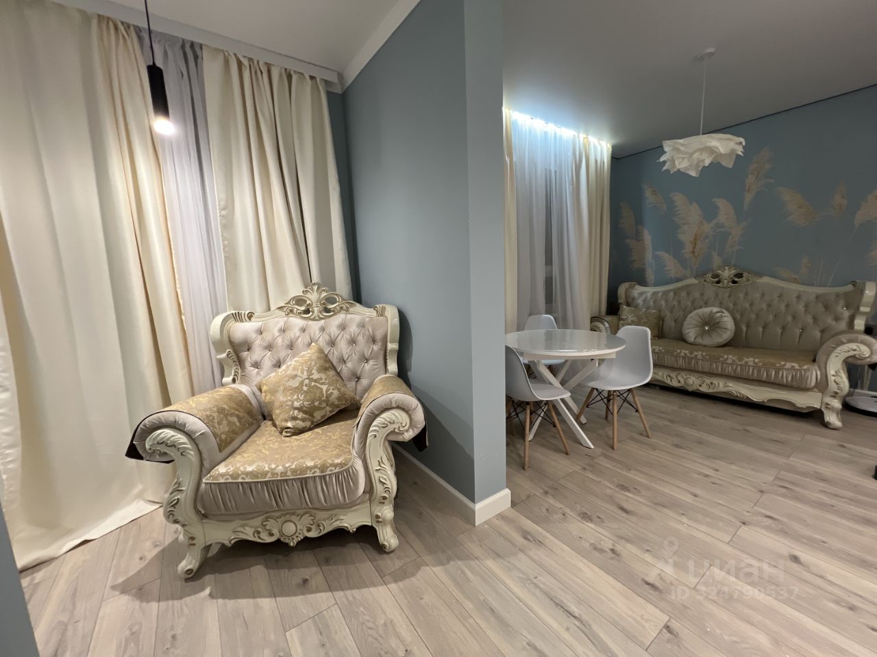 Сдаётся современная однокомнатная квартира в новом доме 2022 года постройки. Общая площадь — 49 кв. м, жилая — 18 кв. м, кухня — просторные 18 кв. м. Квартира расположена на 14 этаже 19-этажного кирпичного дома, окна выходят на улицу. Высота потолков — 2.7 метра.