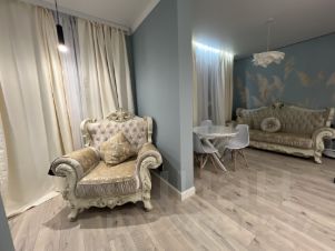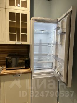 Квартира радует свежим евроремонтом. В комнате и на кухне есть вся необходимая мебель. Из техники — кондиционер, холодильник, робот пылесос, утюг, микроволновая печь, варочная панель с вытяжной системой и стиральная машина. Планировка включает в себя одну большую лоджию, а также совмещённый санузел с душевой кабиной.