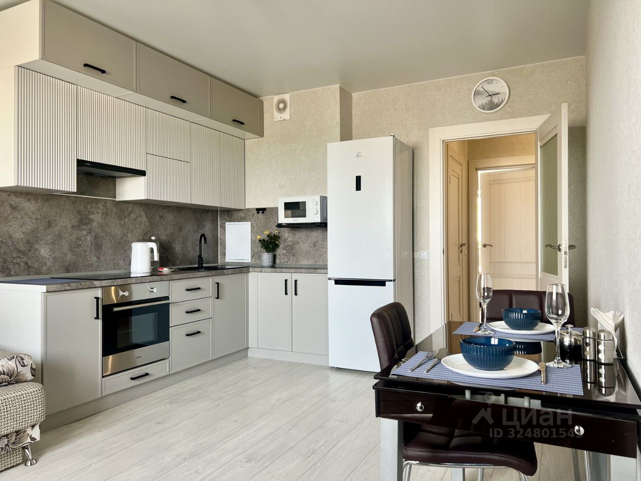 укомплектованная кухня: холодильник, плита, духовой шкаф, микроволновая печь, чайник