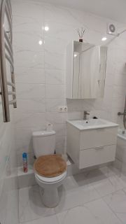 В квартире сделан косметический ремонт, что создает комфортную атмосферу для проживания. В кухне и комнате имеется вся необходимая мебель, а также современная техника: кондиционер, холодильник, телевизор и стиральная машина. Планировка квартиры включает одну лоджию и один балкон, где можно насладиться свежим воздухом и красивыми видами. Ванная комната оснащена ванной, что добавляет удобства в повседневной жизни.