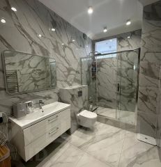 В квартире выполнен дизайнерский ремонт, который приятно удивит вас и ваших гостей. В каждой комнате и на кухне есть стильная мебель, а также вся необходимая техника: кондиционер, холодильник, посудомоечная машина, телевизор и стиральная машина. Особенности планировки включают одну отдельную и одну совмещённую ванную комнату, в одной из которых установлена душевая кабина. Также есть лоджия, где можно насладиться видом на улицу.
