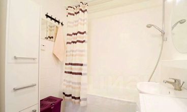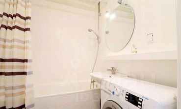 Объемная ванна отлично справиться с расслаблением после рабочего дня, для экономии времени есть душ. Круглое зеркало поможет всегда поддерживать красивый внешний вид, а стиральная машинка освежит белье.