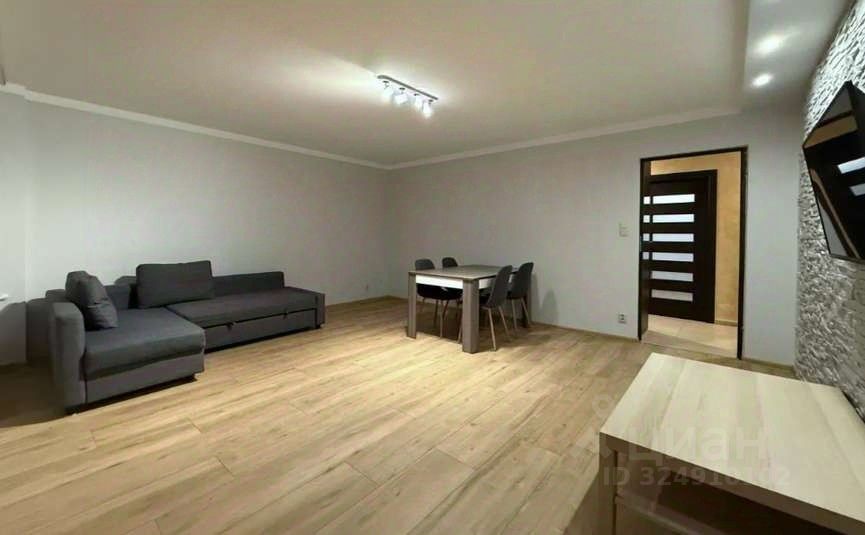 Вторая - гостиная. Угловой диван, покрытый приятной тканью, напротив него подвесной телевизор, подключенный к кабельному ТВ. Можно смотреть интернет программы через подключение по вайфай. Стол предназначен для приема пищи и хорошего времяпрепровождения с пришедшими в гости родственниками или друзьями.