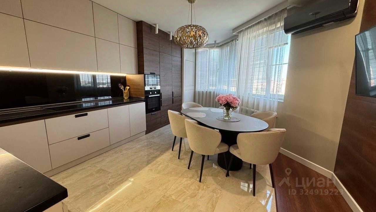 В квартире выполнен дизайнерский ремонт. Просторная кухня площадью 20 кв. м оснащена всей необходимой техникой: холодильник, посудомоечная машина, кондиционер и телевизор. Уютная гостиная и спальни обставлены мебелью, удачно подчеркнутой современным интерьером. Ванная комната оборудована душевой кабиной. Наличие лоджии позволяет наслаждаться свежим воздухом и видом из окна.