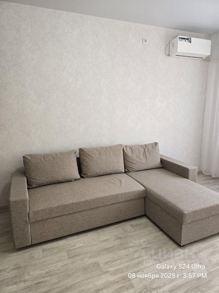 В квартире есть всё необходимое для комфортного проживания: косметический ремонт, мебель на кухне и в комнате, кондиционер, холодильник и стиральная машина. Санузел совмещённый, установлен душ. Дополнительно в квартире есть лоджия.