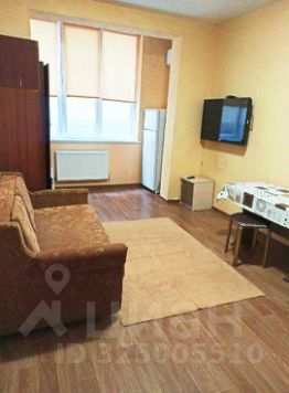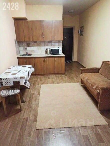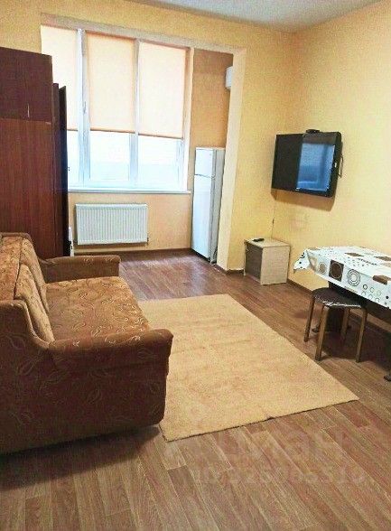 В студии установлен кухонный гарнитур, есть холодильник, микроволновка, электроплитка и электрочайник, посуда, сушилка для белья, утюг, стол, стулья, раскладной диван, тумбочка, шкафы, вешалки для вещей, телевизор, стиральная машинка. Установлена сплит-система. В ванной установлен бойлер. 1 этаж, фото актуальные.